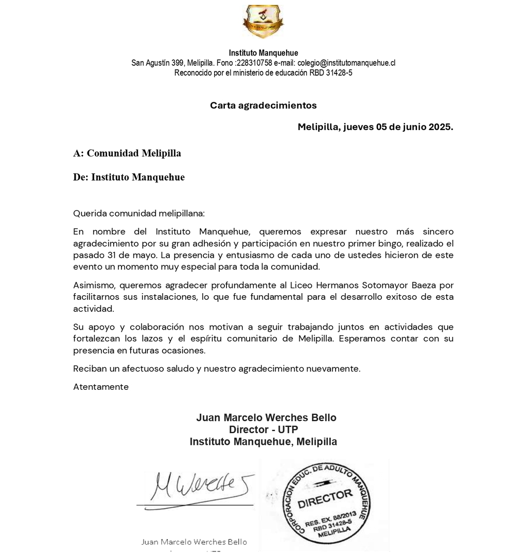El Instituto Manquehue de Melipilla, es una organización educacional dedicada a la recuperación de enseñanza básica y media que aplica los planes y programas de ministerio de educación, específicamente para educación de adultos, el sistema se basa en una moderna técnica educativa, que se caracteriza por la participación activa de cada alumno, en su forma educacional.